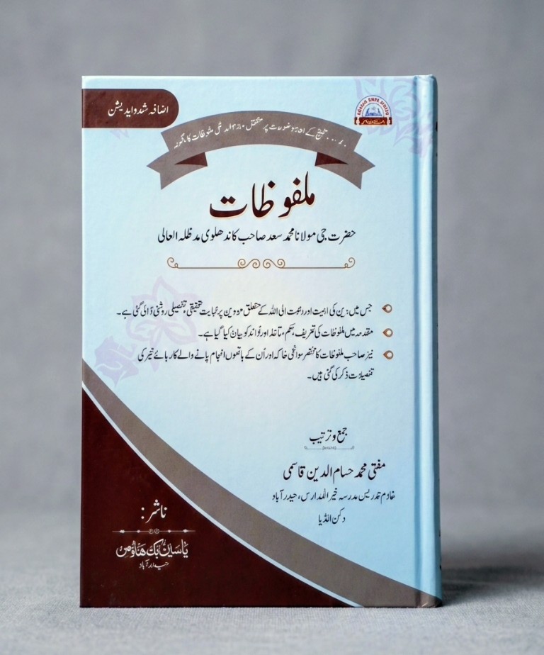 “Malfoozat Maulana Saad Sahab” is a collection of spiritual talks and guidance focusing on strengthening faith (Iman), improving character, and encouraging Dawah efforts. It offers practical advice and reminders for Muslims seeking personal reform and a deeper connection with Islam.